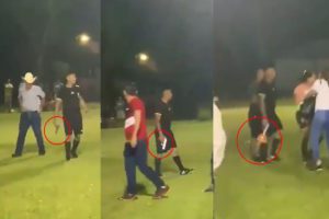 Árbitro saca pistola para defenderse de afición y jugadores tras resultado de partido